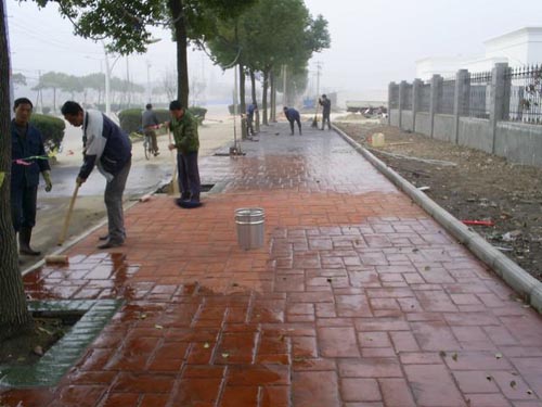 彩色混凝土压膜地坪是初级工艺,国内外比较先进的彩色混凝土施工工艺是通体彩色混凝土。通体彩色混凝土是在混凝土搅拌中添加特定的颜料,然后用专用的工具、抹具或手工技术制成,它能够使地面或墙面永久性地呈现丰富的色彩,能够逼真地模拟天然石材的材质和纹理,而且愈久弥新。