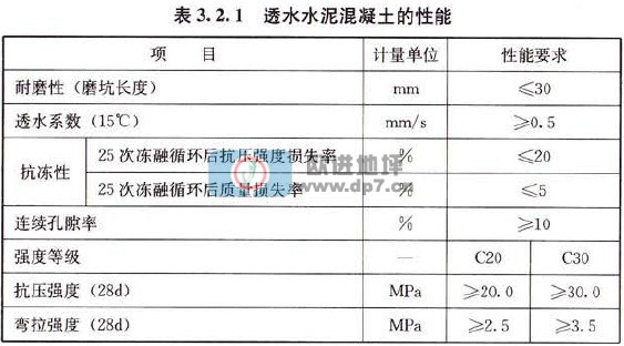 3.2. 1透水水泥混凝土的性能应符合表3.2. 1规定。
