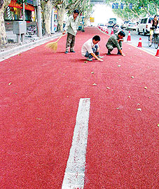 南京市首条彩色陶瓷颗粒路面通车