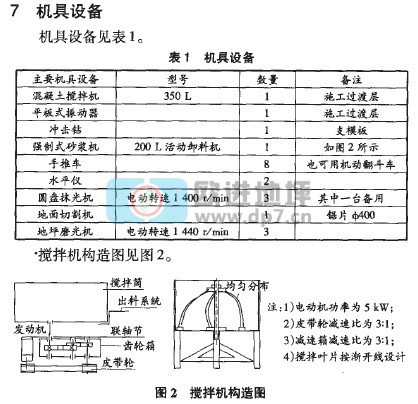 a.面层混凝土配合比:普通42.5 MPa水泥:金刚砂:增强剂(FNC—nl型高强泵送剂):水=l:1.5:0.05:0.14(重量比)。其中金刚砂按粗:细=2:1(重量)的比例添加,必须严格控制水灰比,外观检查拌和料以手握成团,稍稍出浆,l m高处落地散开为宜。