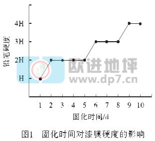 当漆膜表面的硬度达到 3H后,漆膜表面可以站立行人,投入使用。从图 1 可以看出,水性环氧地坪涂料在施工完毕后,必须经过7 d 的完全固化才能投入使用。3 结语