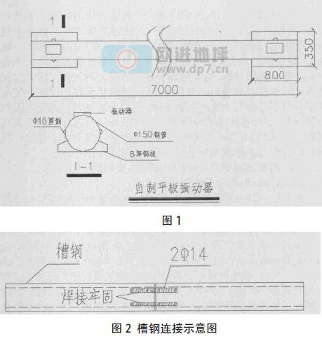 地坪采用自制的平板振动器找平,自制平板振动器详图如图1。