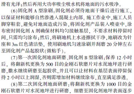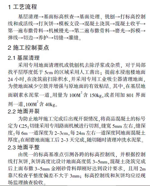 关键词:工艺流程;施工控制要点;耐磨地坪;密封固化剂