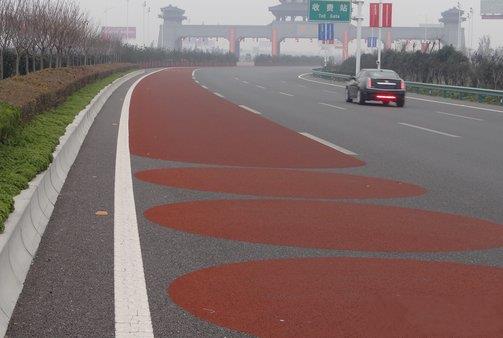 目前道路颜色不是白色就是黑色,长时间注视单调的黑色路面会使驾驶员注意力变得迟钝,诱发疲劳,甚至昏昏欲睡,使发生交通事故的危险性增大。在路面适当部位着色,可以改善驾驶员的视觉环境,提醒驾驶员注意特殊路段,刺激驾驶员的神经系统,有助于驾驶员保持清醒的驾驶状态。例如:在陡坡、转弯和限速区铺装黄色路面,则会提高驾驶员的警惕性;在交叉口、居民密集点和停车点附近铺装红色路面,驾驶员则会小心谨慎;在学校、医院等处铺装蓝色路面,表示安静,则驾驶员就会放轻机器声并不鸣喇叭。另外合理设计路面色彩的变化,则直线段长些也不会影响安全效果,还会缩短到达目的地的距离,降低工程造价,减少运行时间。