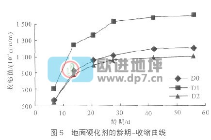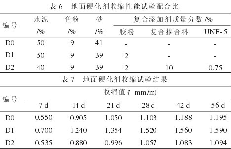 (4)复合添加剂的使用,可降低地面硬化剂的收缩,56 d收缩值可降低8.5%。